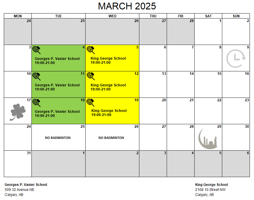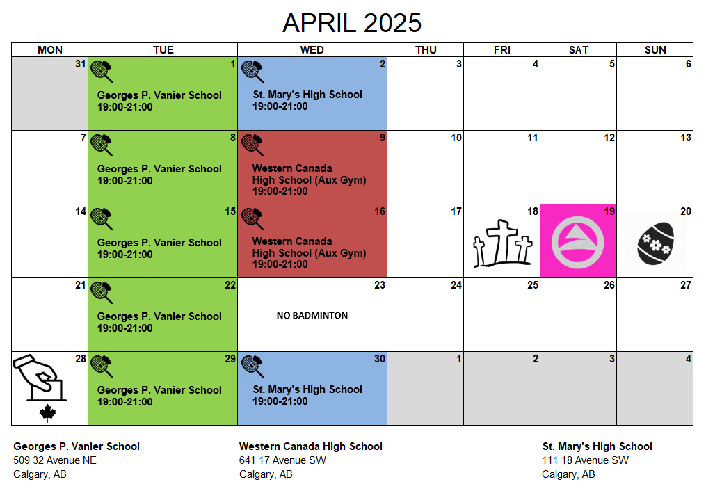 Did you know you can subscribe our calendar and look months ahead? Venues are booked months in advance. Go to our Calendar page and click on +GoogleCalendar to add Mosaic Badminton dates on your calendar. You will receive reminder alert the day before the event.